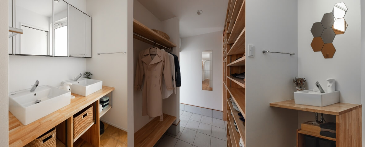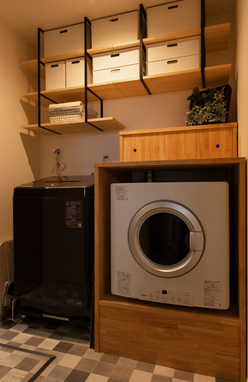 ご主人: 妻は育休が明けたら仕事を再開する予定なので、洗濯も楽にできるようにガス乾燥機を設置すると決めていましたが、市販品には素敵なものがなかったので、家に合う見栄えの良い造作家具を作っていただきました。洗濯、乾燥をしたら畳んで、部屋に持っていくだけ、という動線ができたので、見栄えも使い勝手も良く満足しています!その他にも、洗面台やシューズクロークなども造作でオリジナルのものを設置しました。動線を考えて作ったので、どれも使い勝手が良く、満足しています。