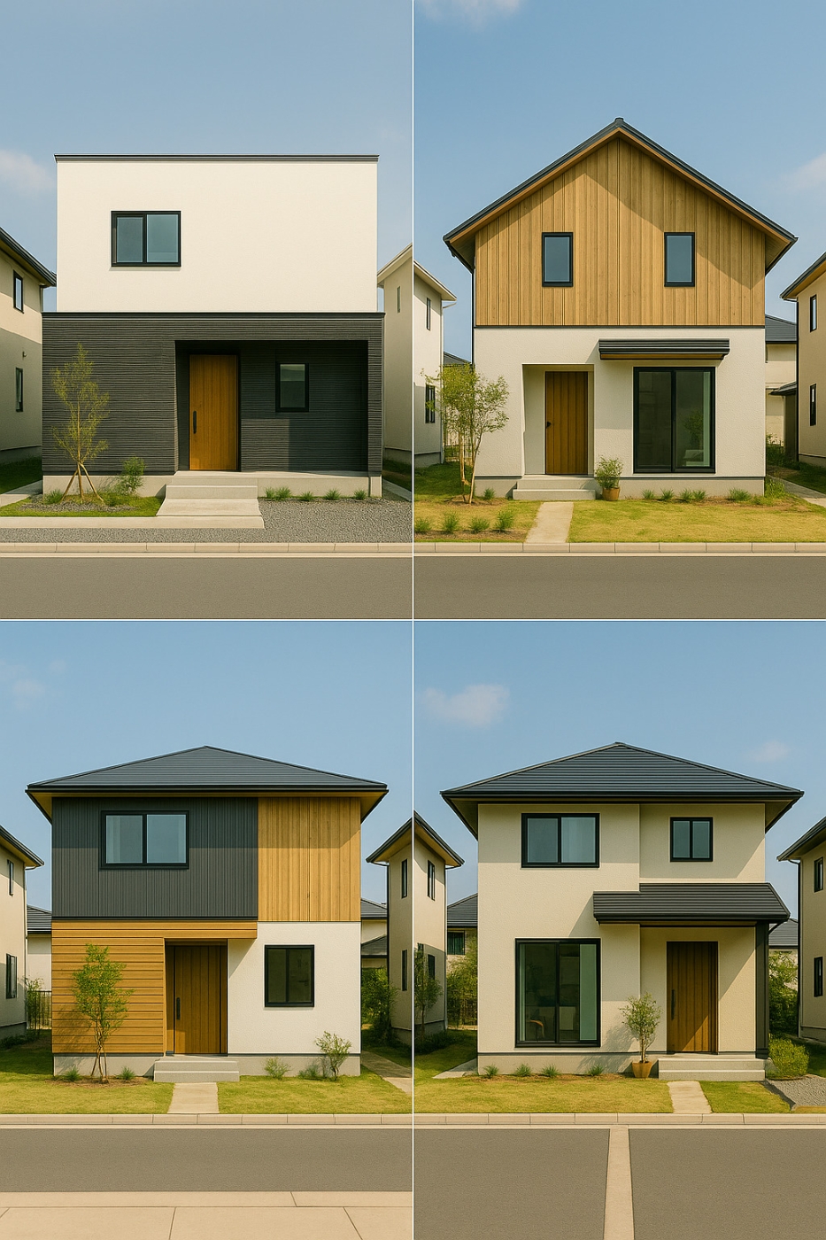 箱型のシンプルモダン、切妻屋根の和モダン、寄棟屋根の安定感など、屋根形状も重要な要素です。